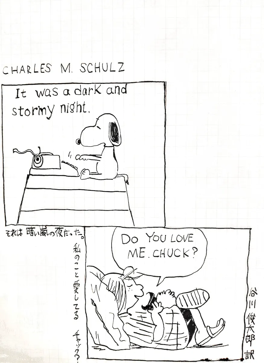 それは 暗い嵐の夜だった。「私のこと愛してる チャック?」CHARLES M.SCHULZ/谷川俊太郎訳