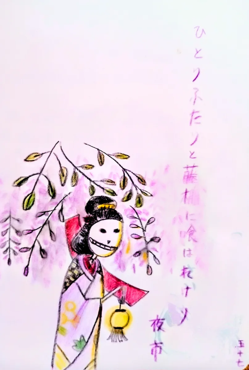 ひとりふたりと藤棚に喰はれけり夜市