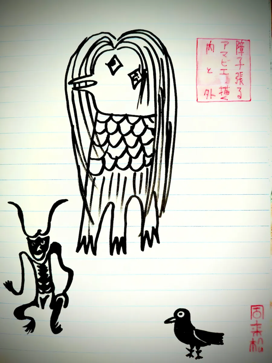 障子張るアマビエ描く内と外風来松