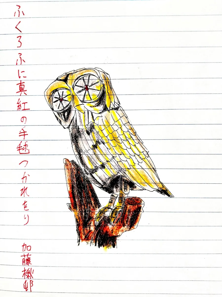 ふくろふに真紅の手毬つかれをり加藤楸邨