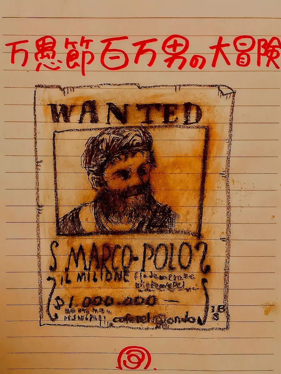 帰国後、マルコはジェノヴァとの戦争に参加。投獄された際に、イタリア人の著述家ピサのルスティケッロに話した物語が、『東方見聞録』となった! 原題は『マルコポーロ旅行記』もしくは、『イルミリオーネ』、『世界の記述』…。実は、フランス語の祖本は既に散逸してしまっていて存在せず、残っているの多数の写本のみ。正確な原題も分かっておらず、『東方見聞録』と言っているのは、日本と韓国だけらしい。