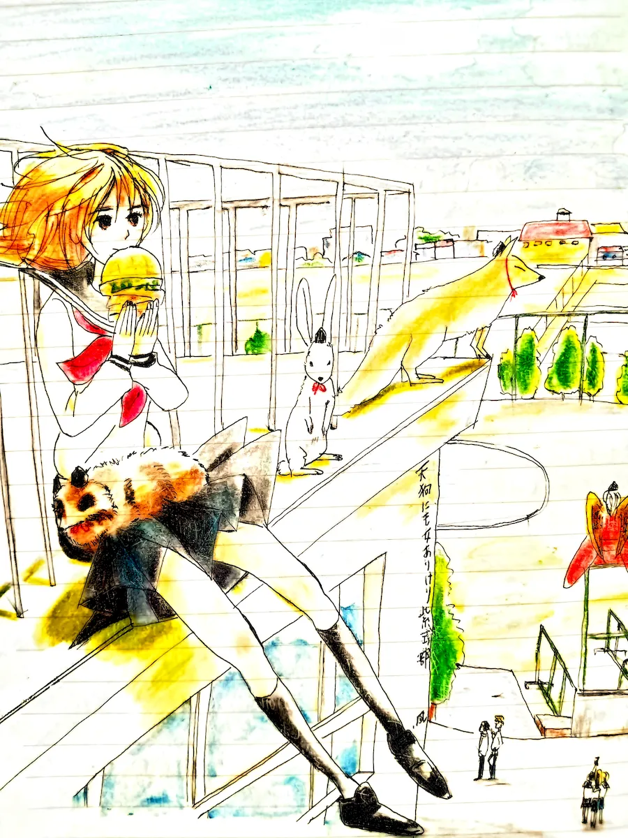絵に描いたのは、2013年岩本ナオ作『町でうわさの天狗の子』。ほんわかしつつも、ヘンな迫力のあるマンガだった。岩本ナオは、この作品も含め、2年連続で『このマンガがすごい!』のオンナ部門1位を受賞した。