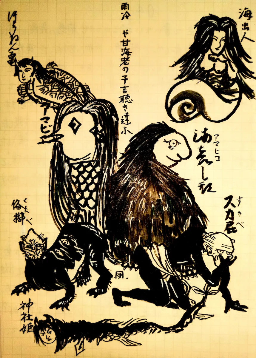 今更ながら、満を持しての預言獣の登場である。きっかけは、これを書いている新しいノートが、アマビエ表紙の〈LIFE〉のものだった事(2021とあるので、売れ残りだろう。現在2025年)。因みにコレ、〈瀬戸内文具〉ともあり、調べてみると、香川の〈文具生活〉(元〈コクヨ四国代理店〉)、山口の〈十字屋〉、広島の〈田山文具〉(かつて筆者もよく行った!)という老舗文具店3社のコラボブランドだった!